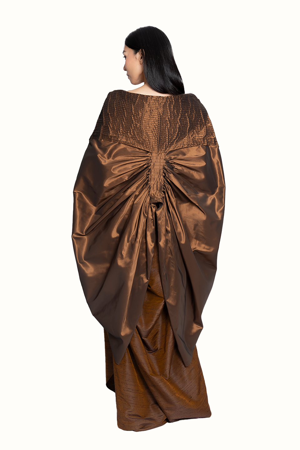 The Ando Cover-up mid-length cover-up with a deep V-neckline, wide sleeves, and a defined waist tie, featuring pintuck detailing and a flat-pleated center back. Designed for effortless layering.