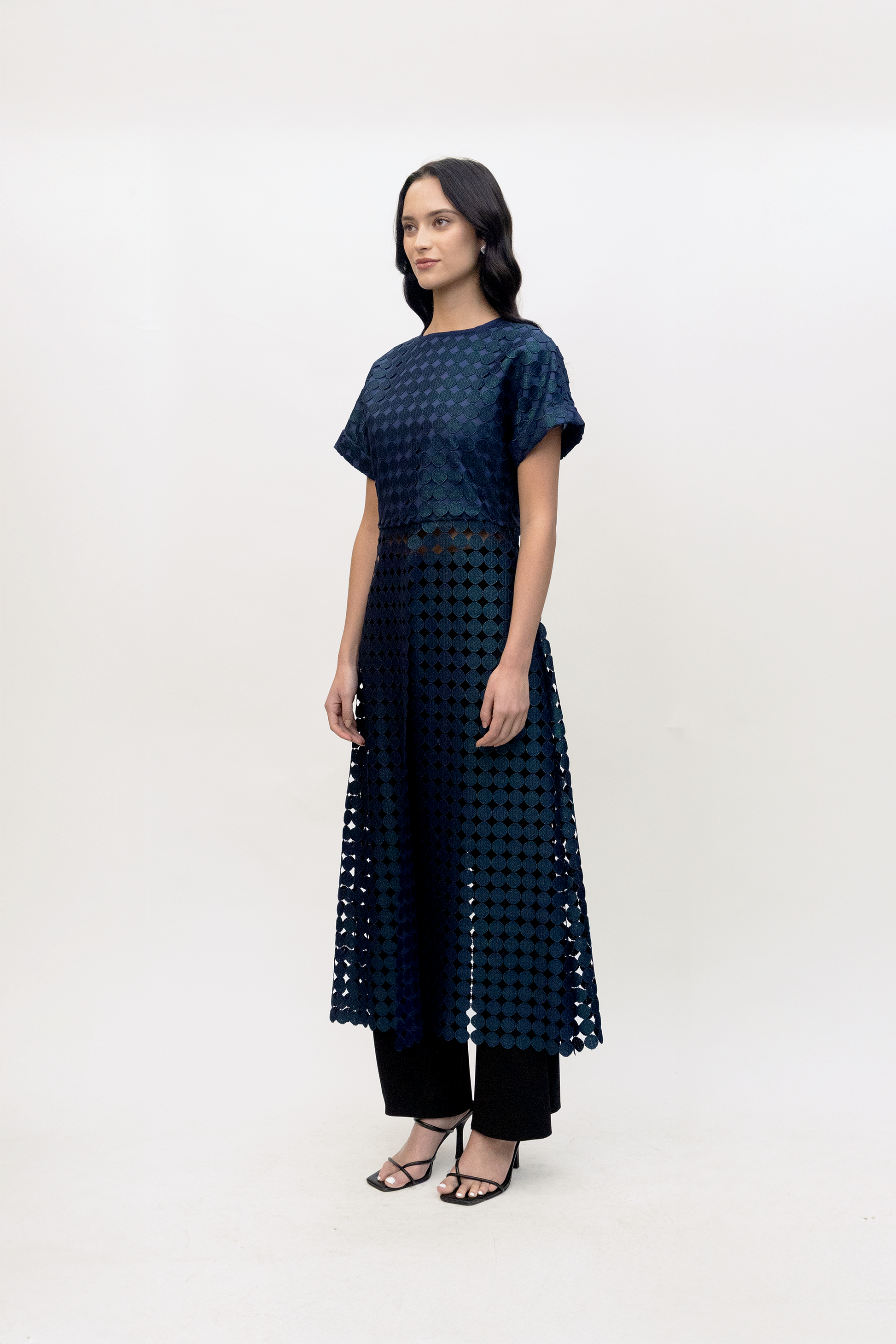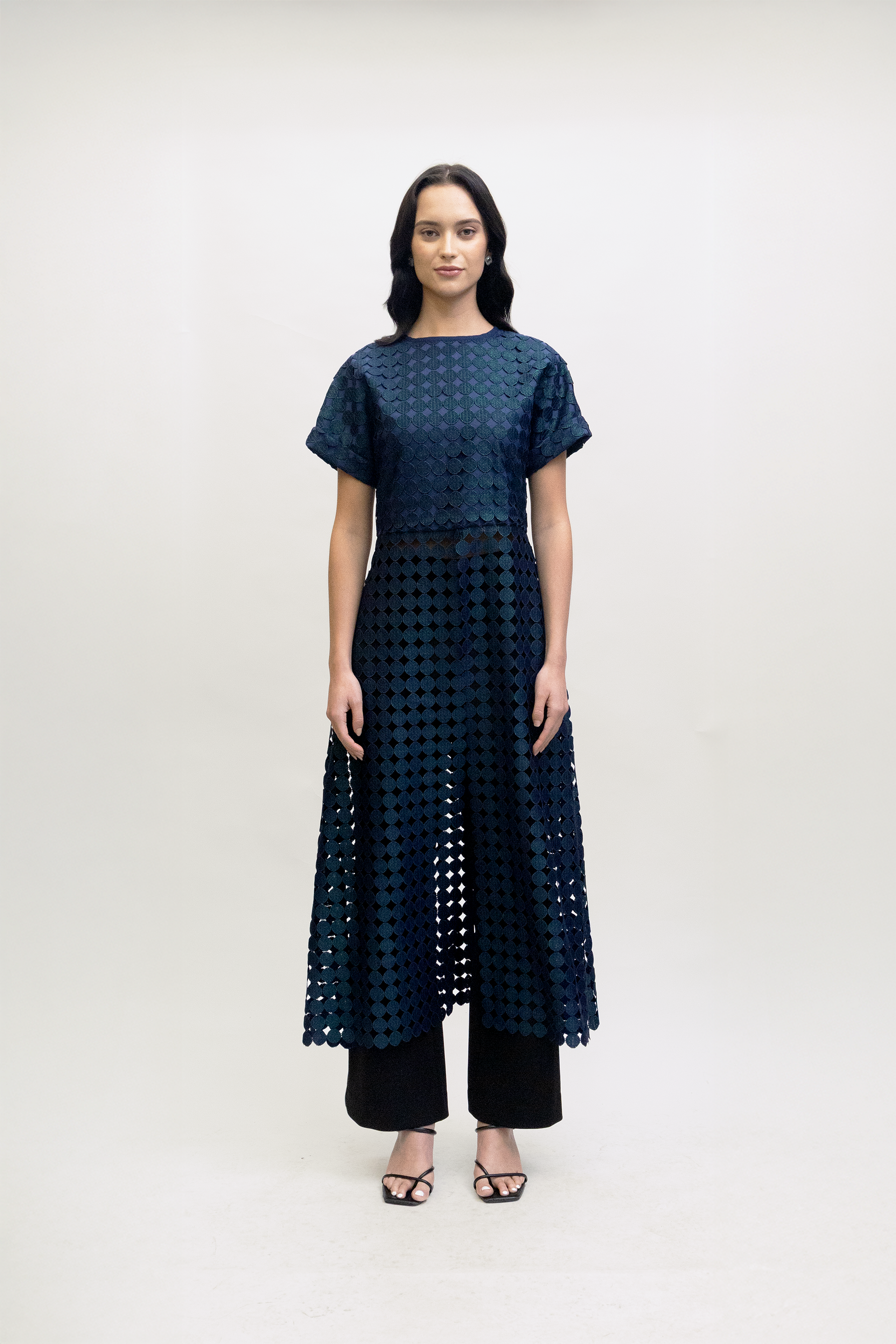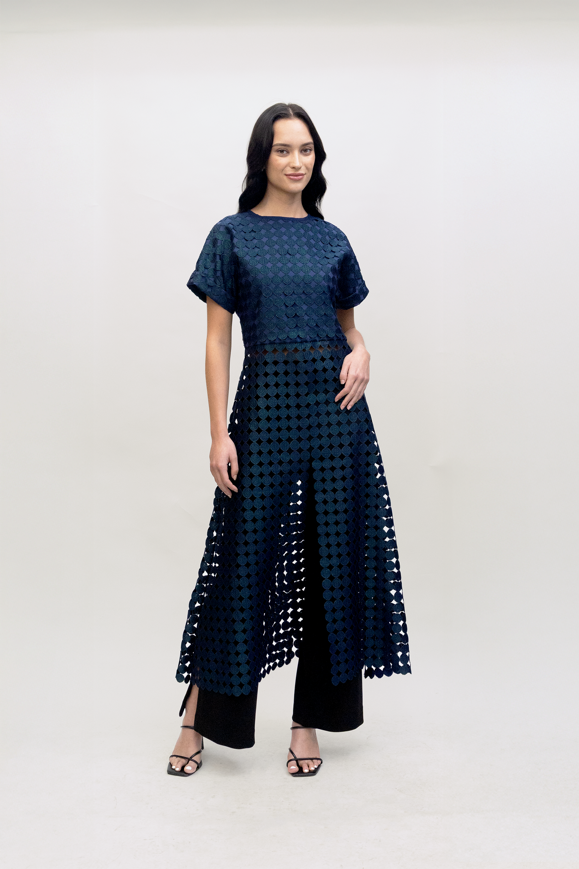 The Consunji Top is a round neck short dolman sleeve tunic top.