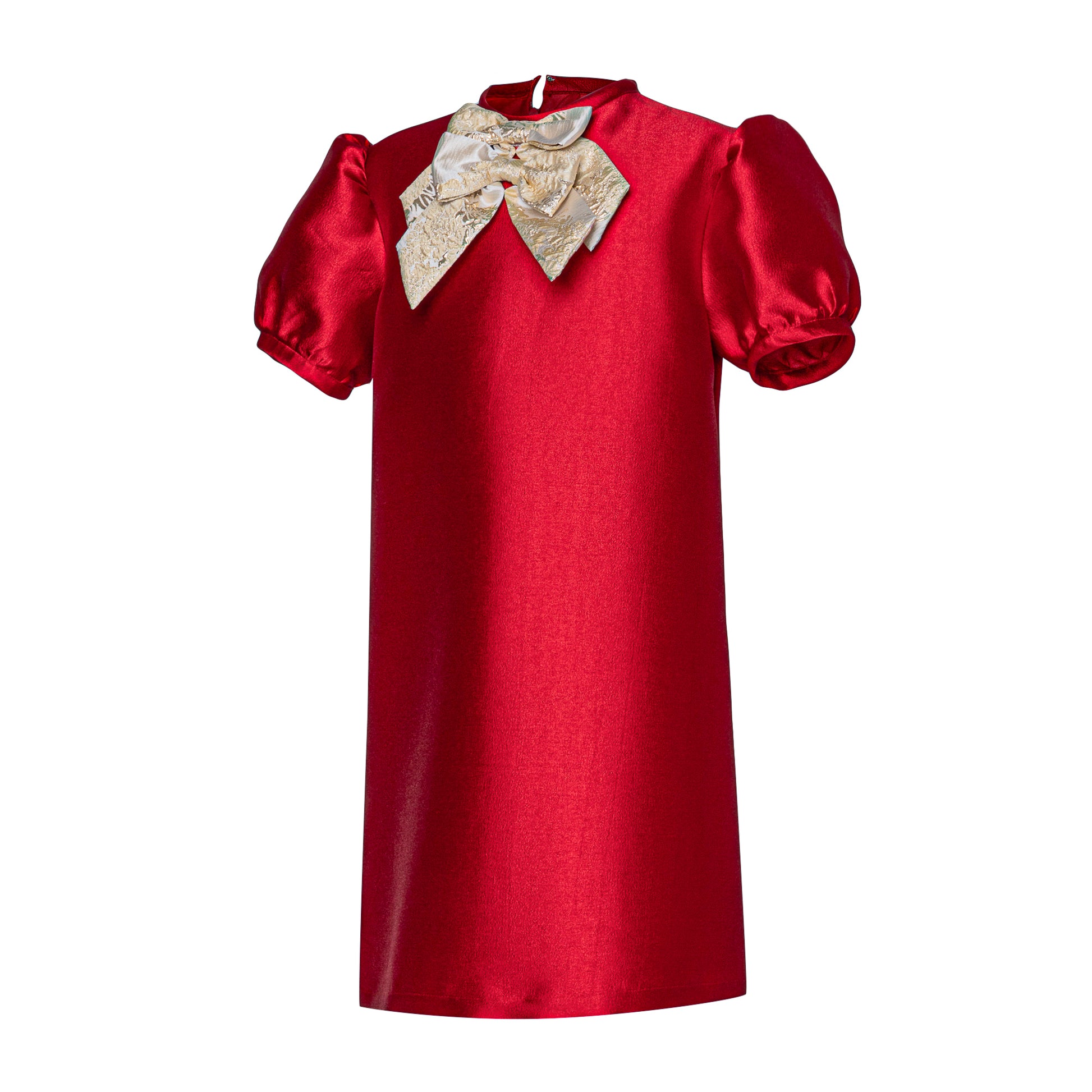 The Dayo Dress is a column dress with short puff sleeves and bow details.