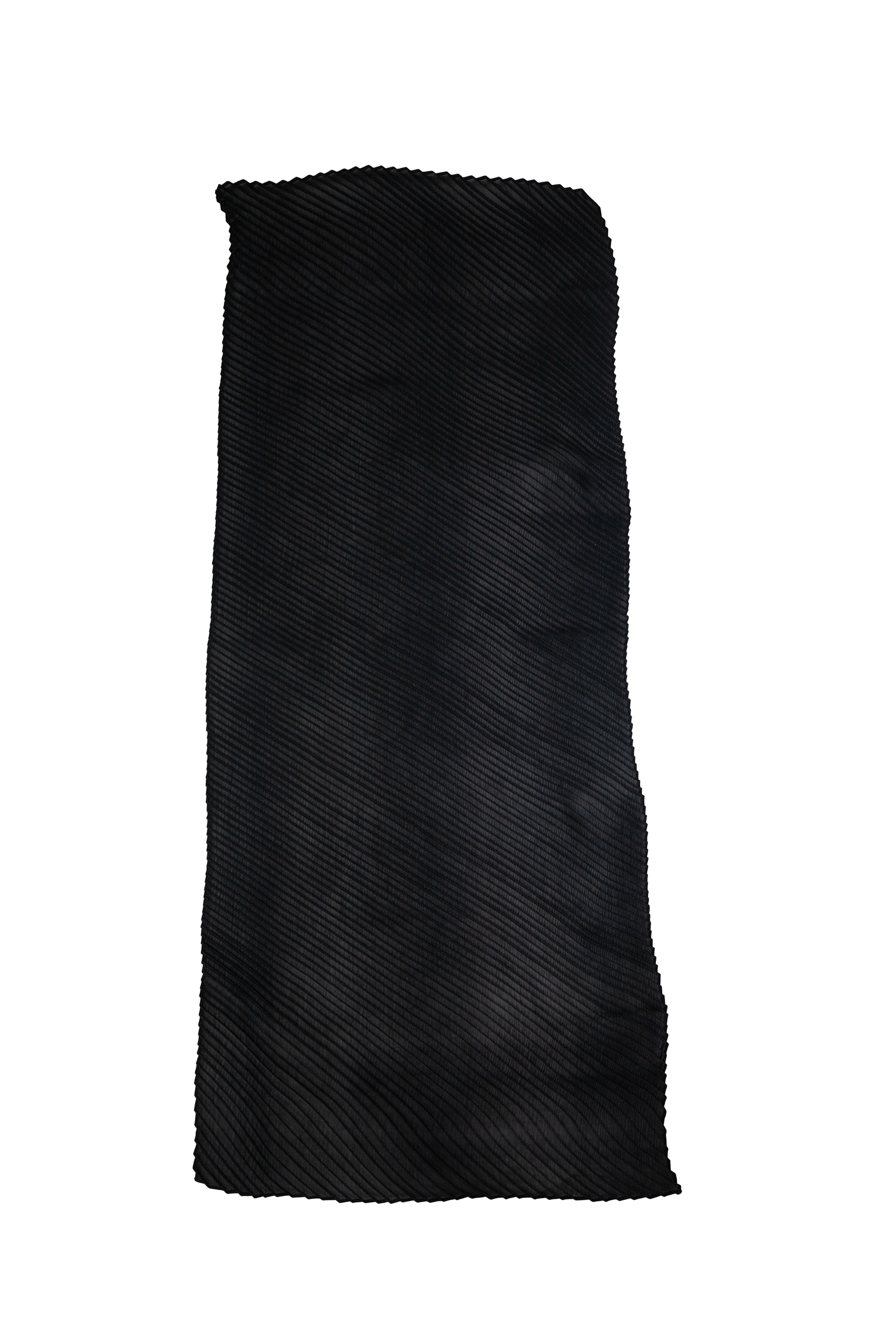The Pleated Scarf is a rectangular diagonal pleated scarf.