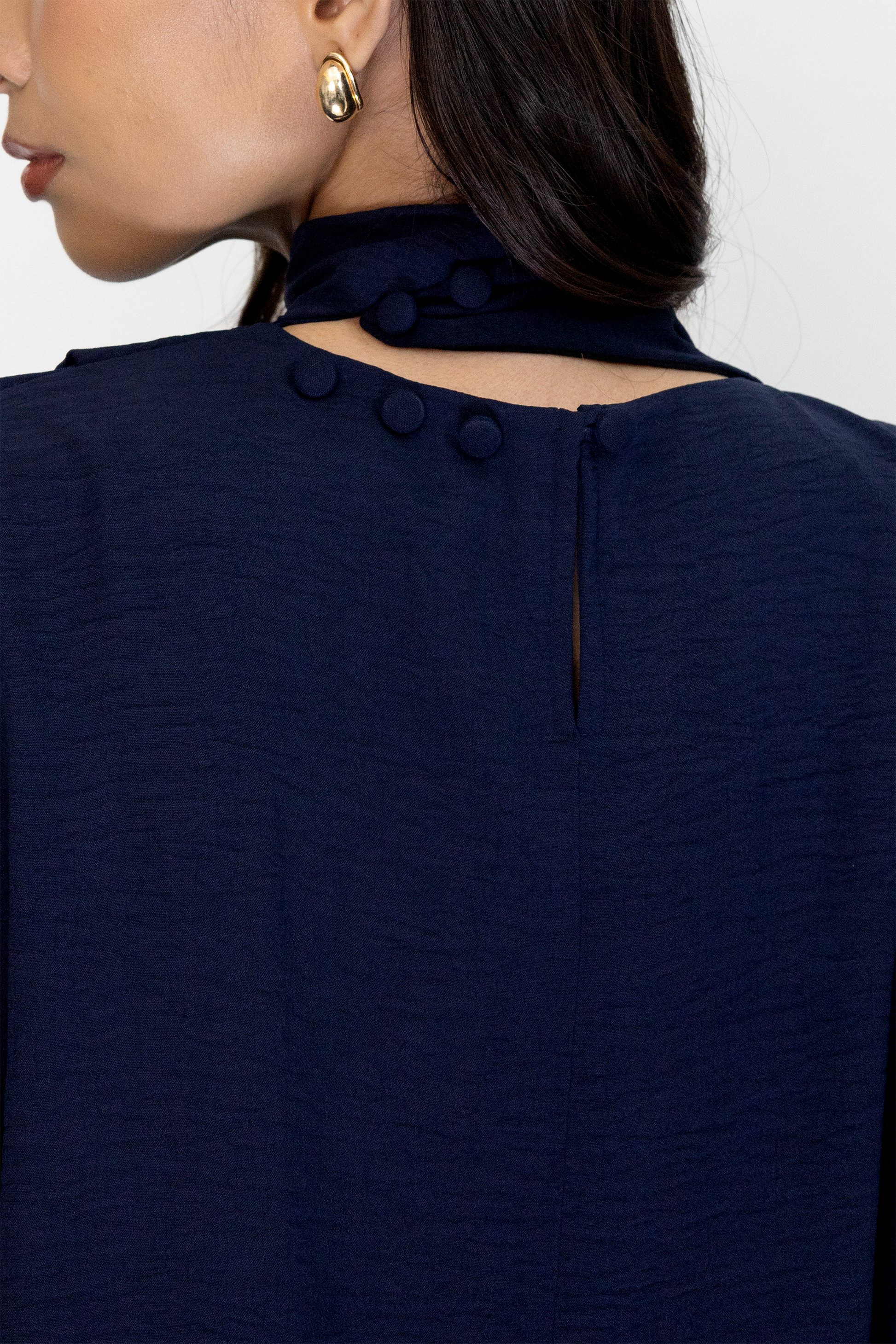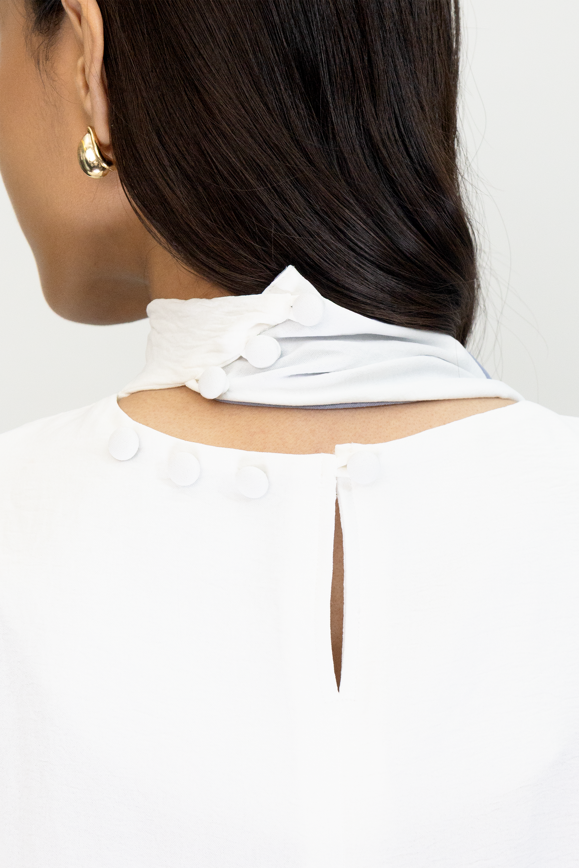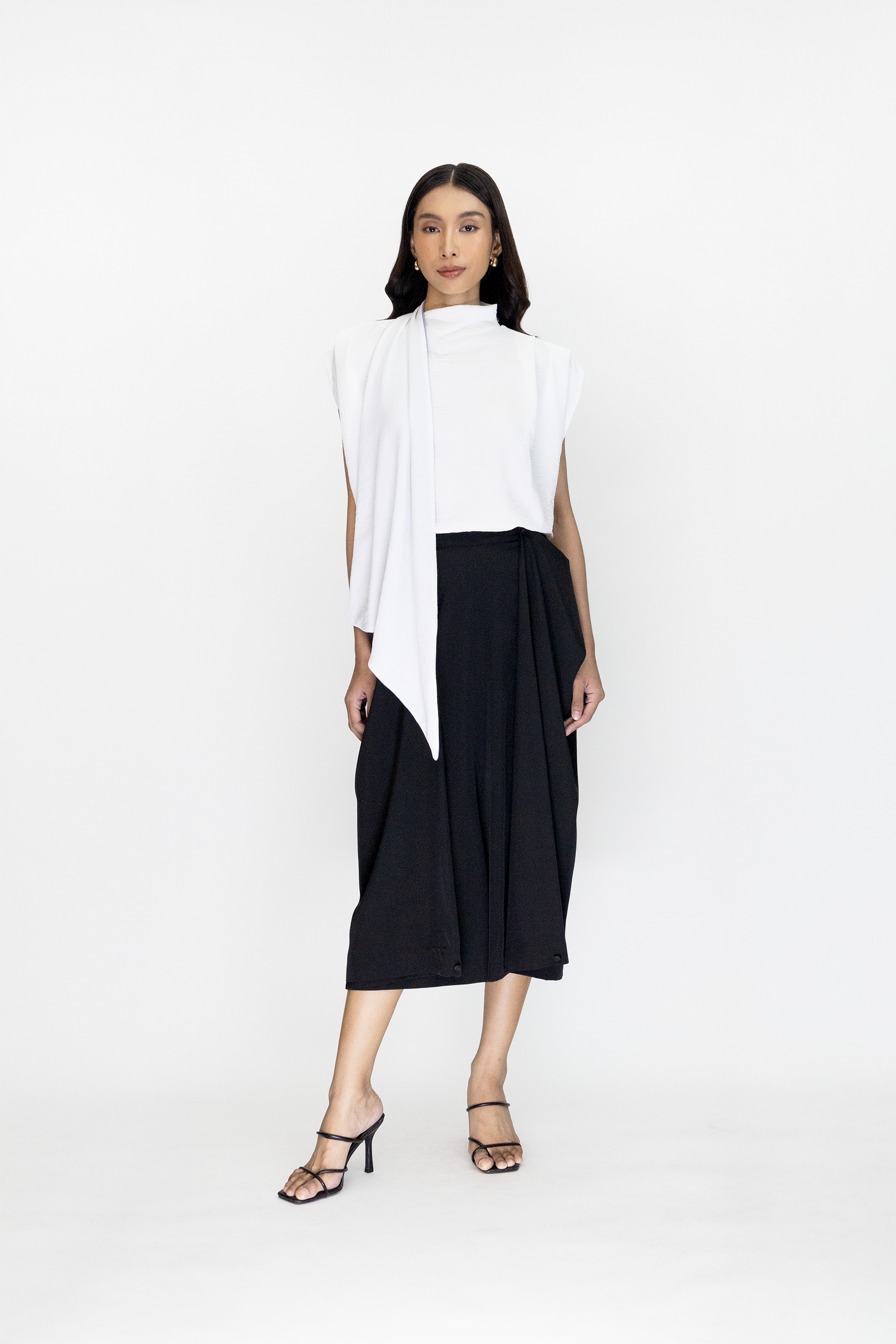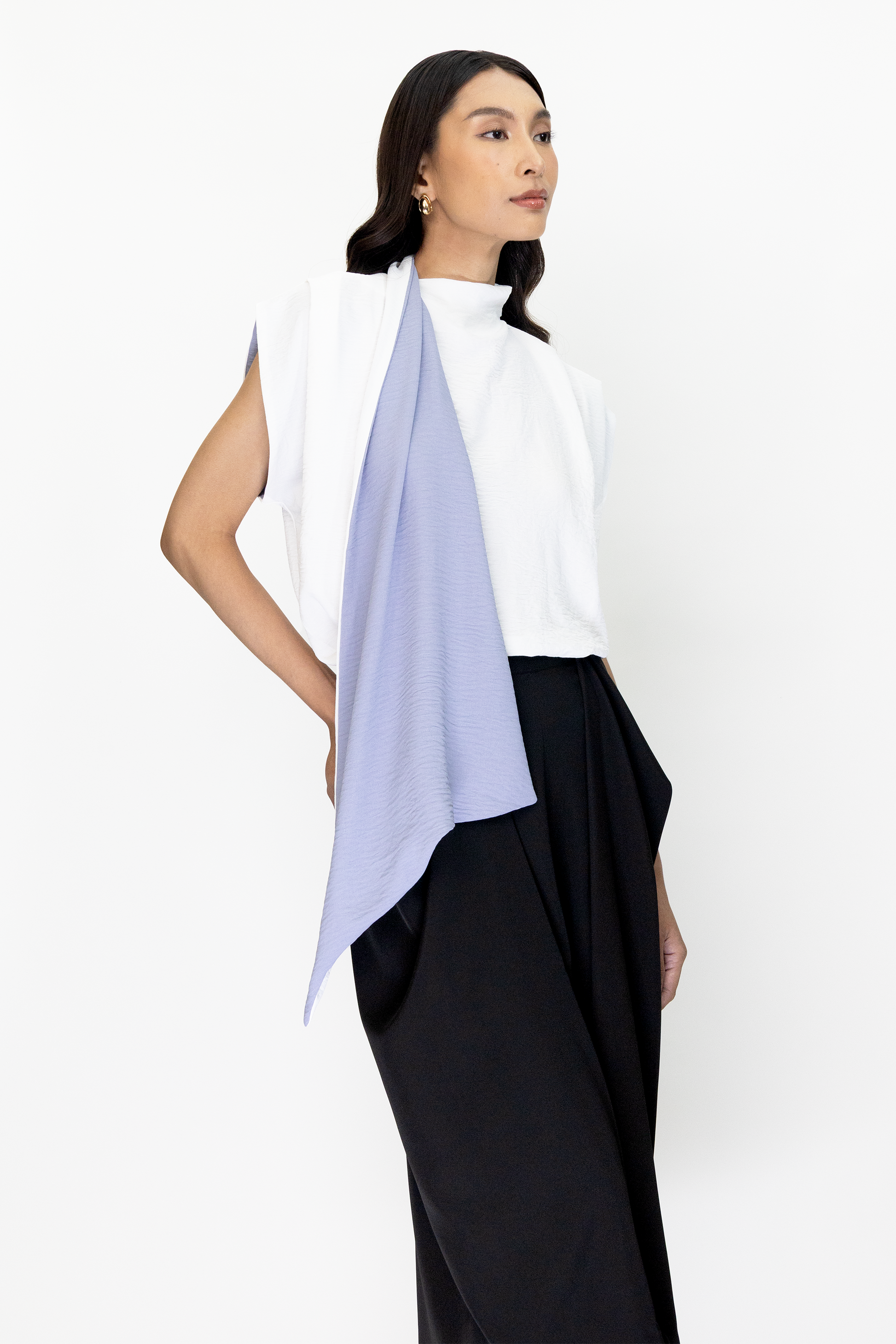 The Suma Top is a sleeveless top with two tone colored neck sash.